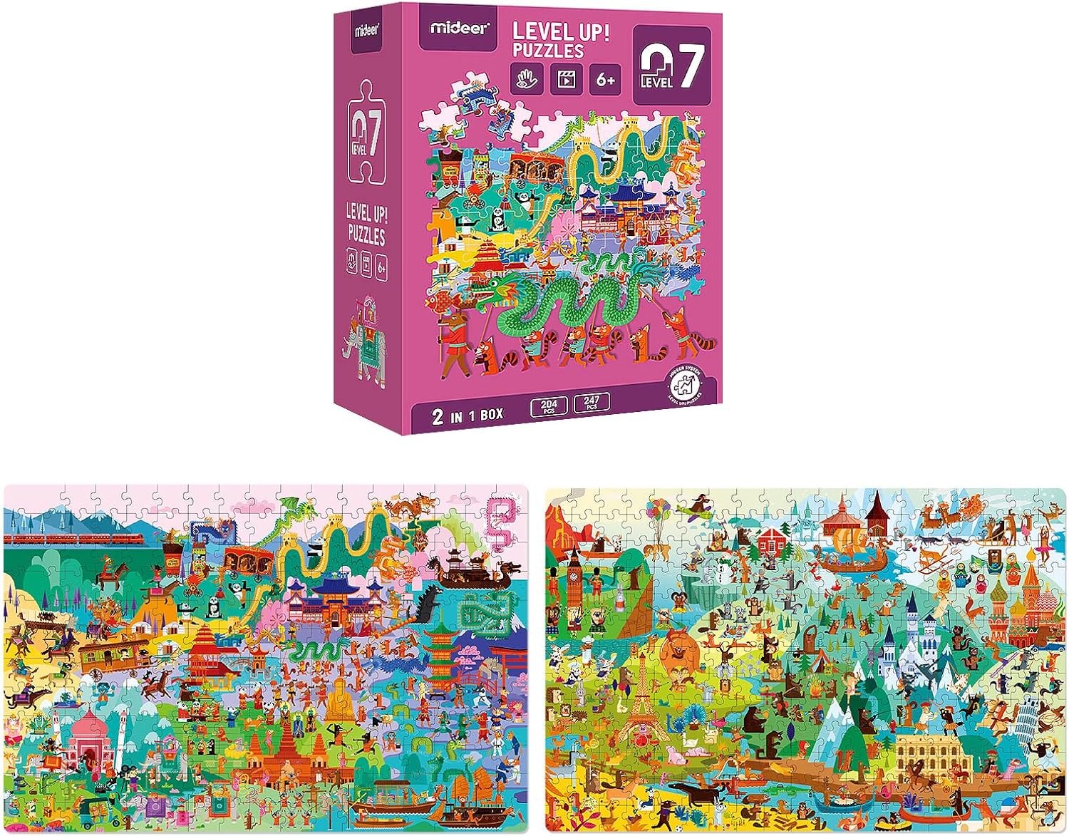 - 【Package Includes】-This set contains 2 educational puzzles:1*204PCS Puzzles,1*247PCS Puzzles