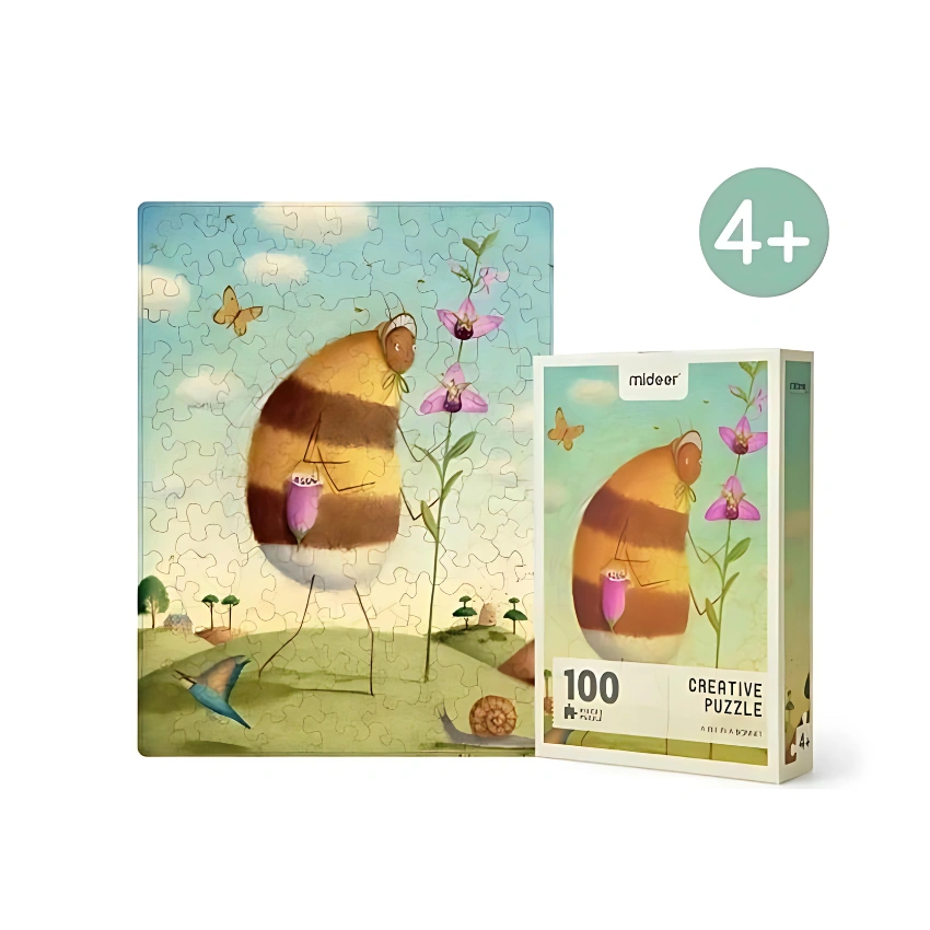 The Mideer 100 PCS Creative Puzzle – A Bee in a Bonnet is a charming and artistic jigsaw puzzle designed to delight children and parents alike 🧠🎨. Featuring a whimsical illustration of a sweet bee wearing a bonnet, this puzzle sparks imagination, storytelling, and calm, focused play 🐝🎩.