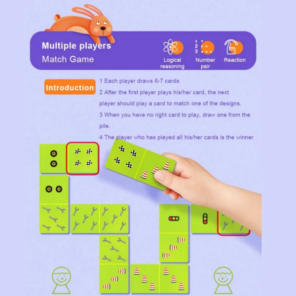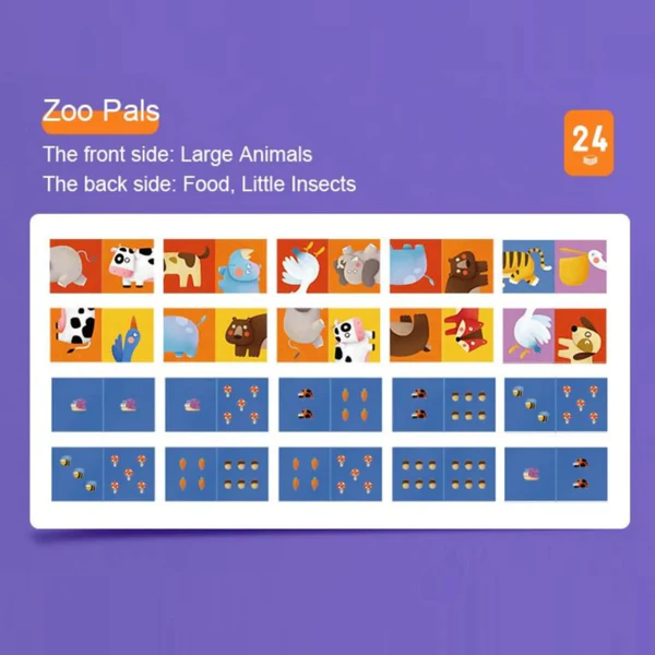 The Mideer Domino Puzzle Zoo Pals features 24 reversible cardboard dominoes with two levels of play: one side features colorful images, while the other side focuses on counting. Designed to make learning easy and enjoyable, this game turns challenging concepts into a delightful activity for kids.