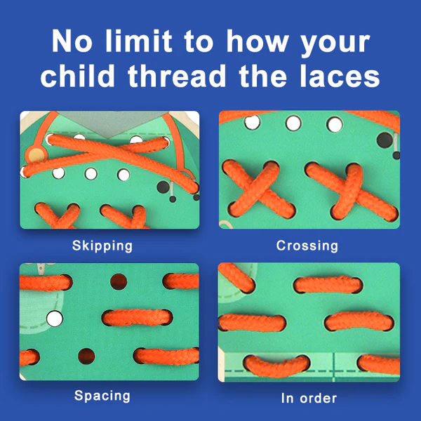 🧠 Cognitive Skills – Patience, concentration, and logical sequencing are enhanced as kids work through lacing patterns.