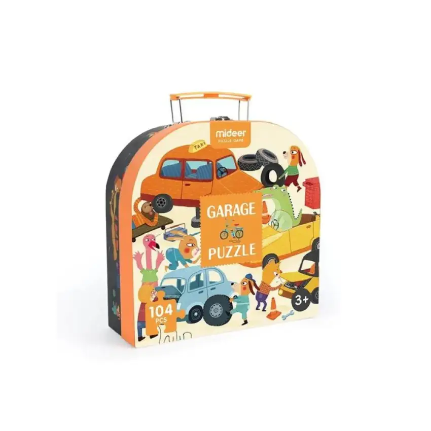 The Mideer Gift Box Puzzle – Garage (104 Pieces) is a fun and interactive jigsaw puzzle that brings a busy car garage scene to life for children 🚙🏎️. With bright, detailed illustrations, it encourages imaginative play, storytelling, and creativity during playtime 🎨🧠.