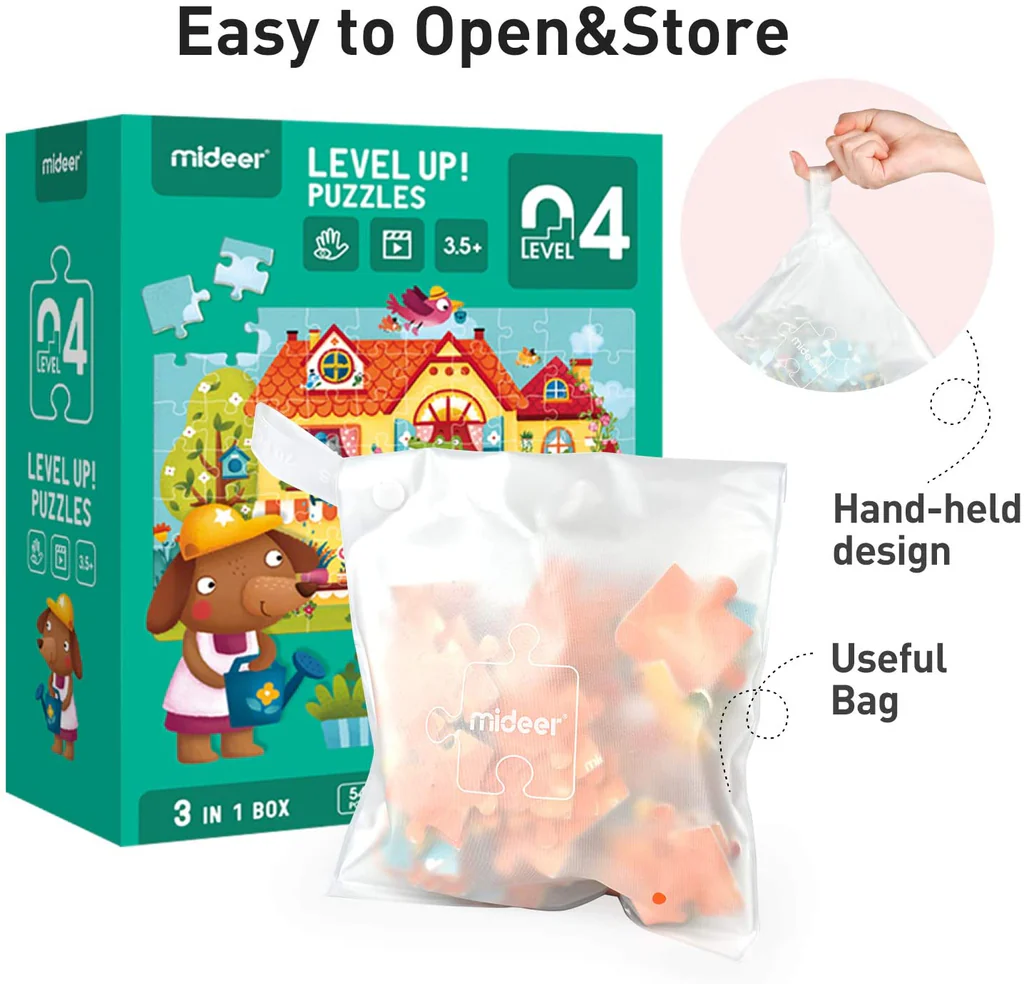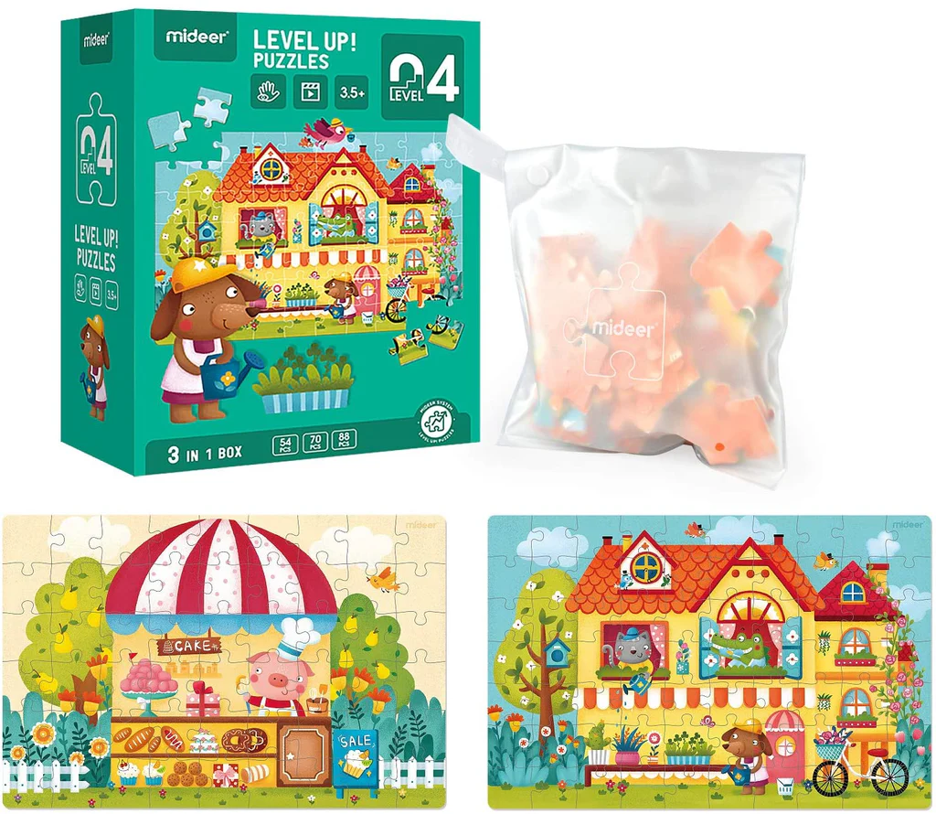 Introduce kids to progressive puzzle fun with 3-In-1 Level Up Puzzles: Level 4 – Fable Town, part of the popular Mideer Level Up! Puzzle Series that grows with your child’s skills through three exciting challenges in one box! 🧠✨