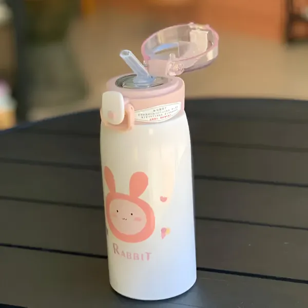 Make hydration adorable and convenient with the Rabbit Printed Thermal Water Bottle with Straw – 350 ML Cute Insulated Bottle 🐰💧❄️! Featuring a charming rabbit print and a built-in straw, this thermal bottle keeps water, juice, or milk at the right temperature for longer, making it perfect for kids 🌟👌.