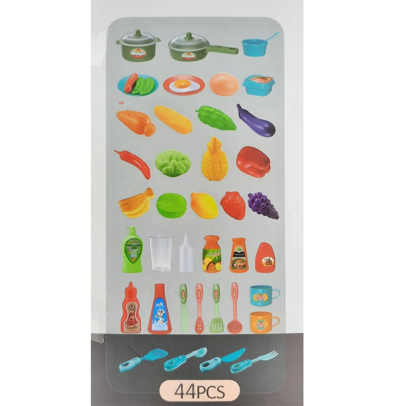 • 44-piece pretend kitchen playset with water spray feature 💦